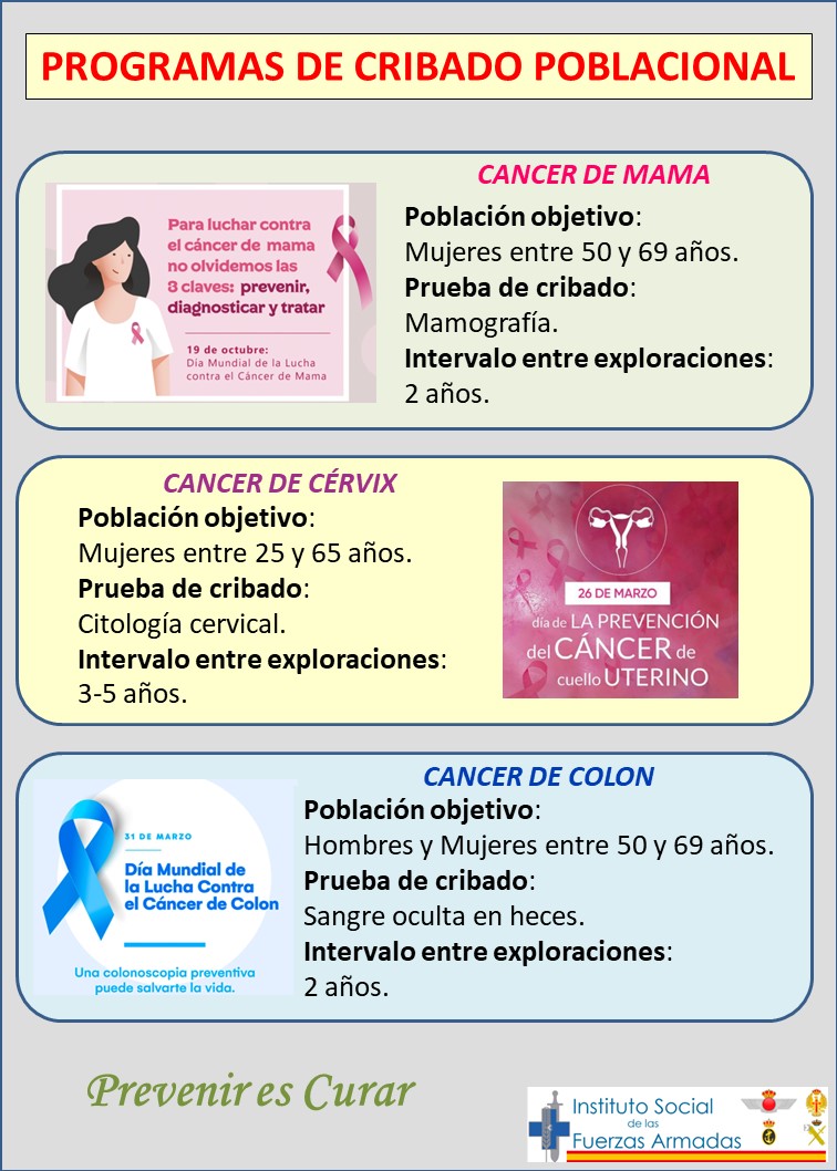 Programas de cribado poblacional para la prevención precoz: cáncer de mama, cérvix y colon