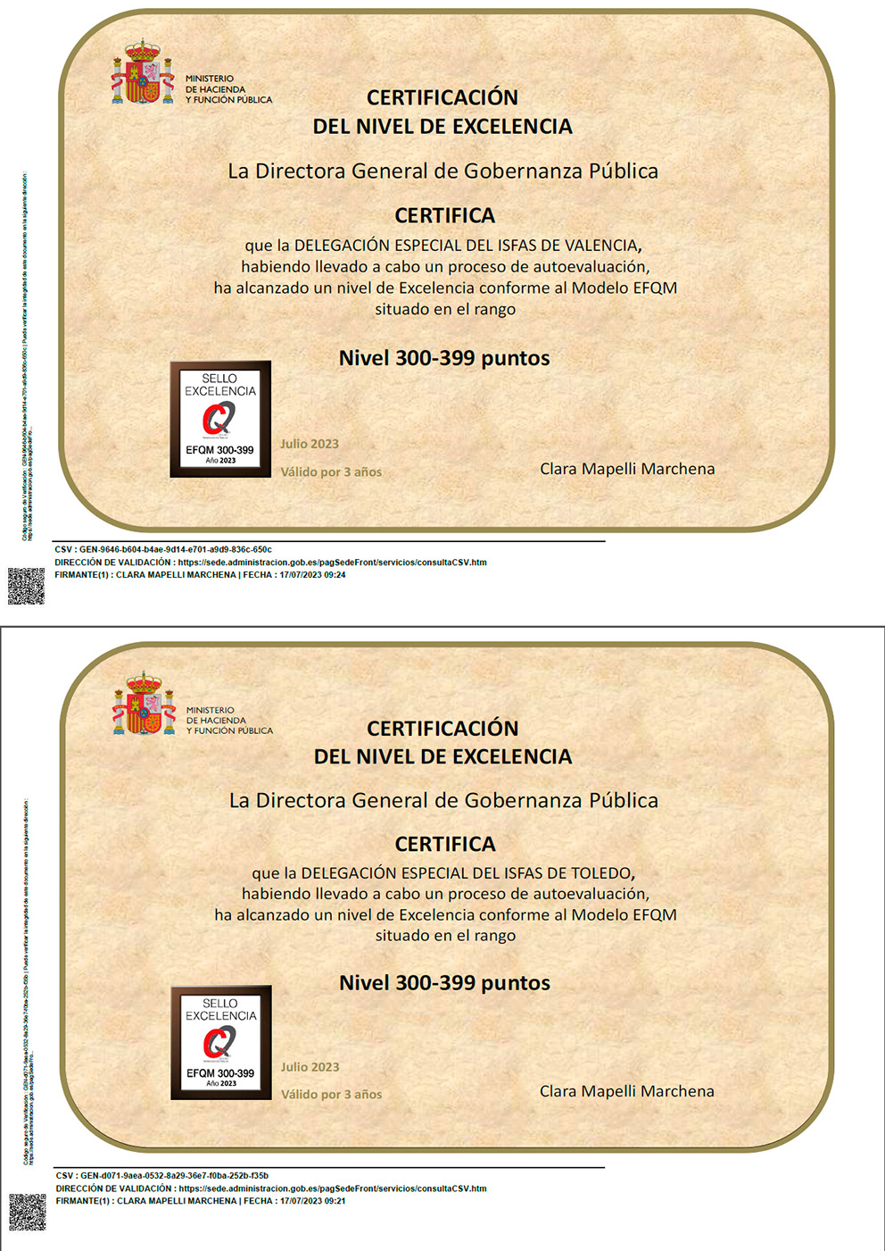 Las Delegaciones especiales de Valencia y de Toledo han alcanzado el nivel de excelencia (+300)