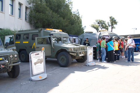La presencia del Batallón, que finalizó al día siguiente, incluyó un puesto de información de la UME. Numeroso público, sobre todo niños, visitó la exposición y pudo disfrutar subiéndose en los vehículos y entrando en el módulo familiar (CEHAPO), concebido para alojar una familia de seis miembros.